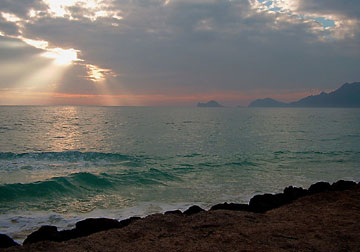 and standing by the ocean